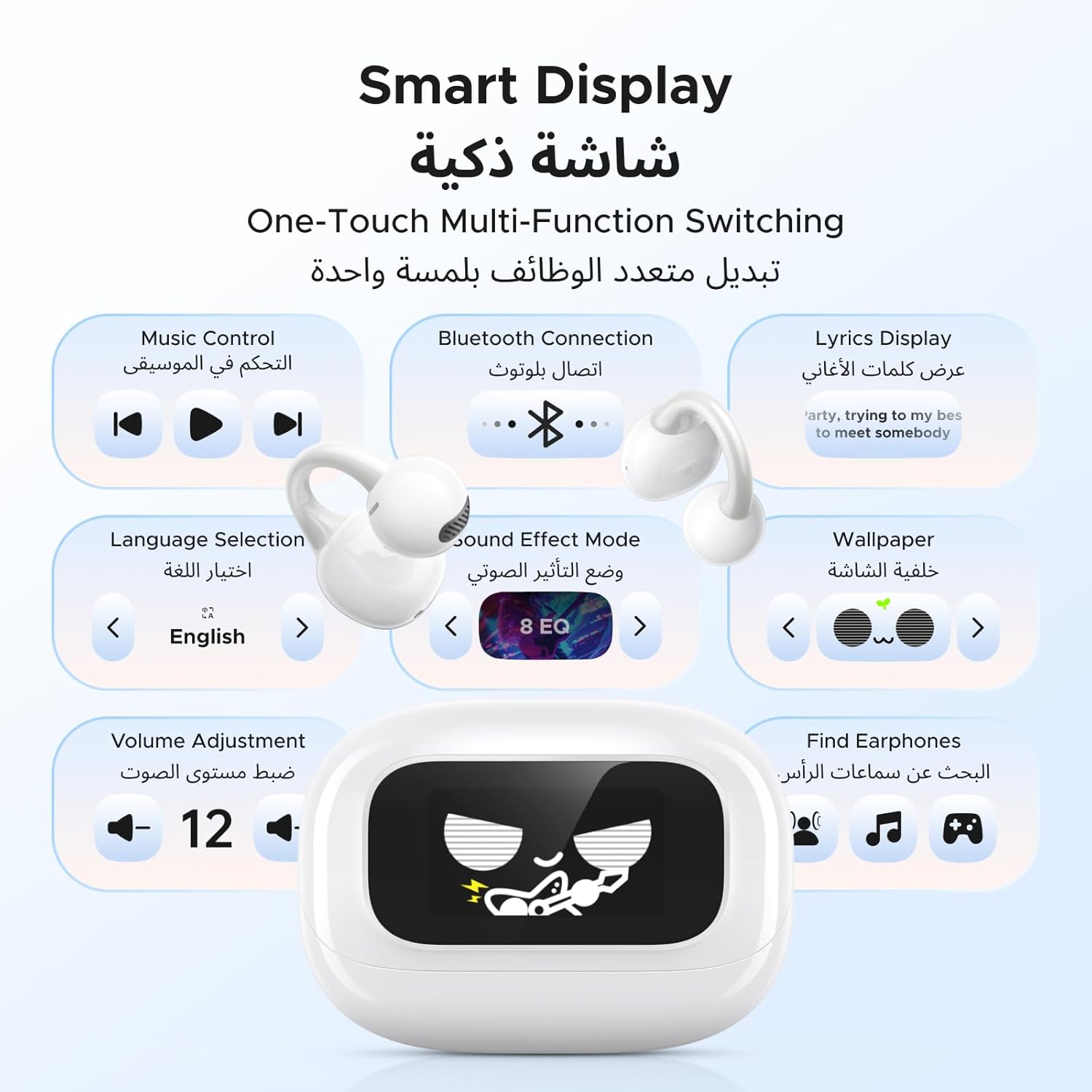 Ugreen Clipbuds Magic features a high-quality color display on the charging box. You can switch music, increase/decrease music volume, customize sound effects, and display lyrics on it. What's more, the case has the function of taking photos and switching videos, and you can set your favorite photos as the charging box wallpaper, which makes it outstanding among the earphones.