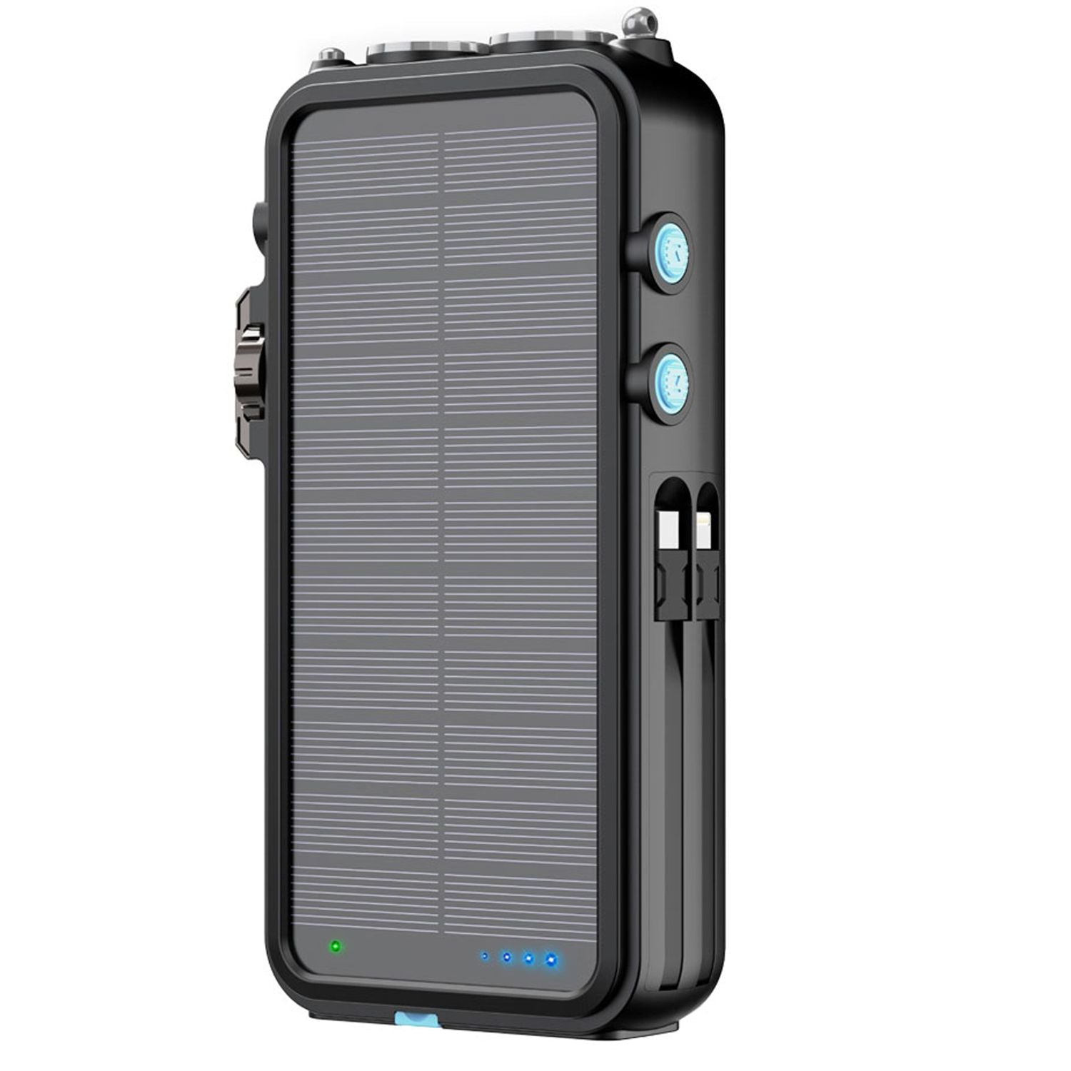 The Powerology 16000mAh Solar Power Bank with FM Radio, Speaker & Lights is a stylish, flexible power solution for daily use and emergencies. This power bank offers reliable charging and is perfect for outdoor adventures. Its exclusive design features A-grade polymer battery cells for long-lasting performance. With a 16000 mAh capacity, it can charge multiple devices, ideal for trips or busy days. You can charge it using solar power or a hand crank, ensuring power anywhere. It also includes magnetic modules for wireless charging. Plus, it has two built-in cables for easy charging. No extra accessories are needed. The power bank features a built-in LED flashlight for emergencies. It has a high-sensitivity FM radio with weather warnings. Stay informed in bad weather. Bluetooth connectivity is available for music or calls. There is also a headphone jack for private listening. The Powerology 16000mAh Solar Power Bank combines powerful charging, backup options, and emergency features. It's the ultimate portable solution to stay powered and connected.