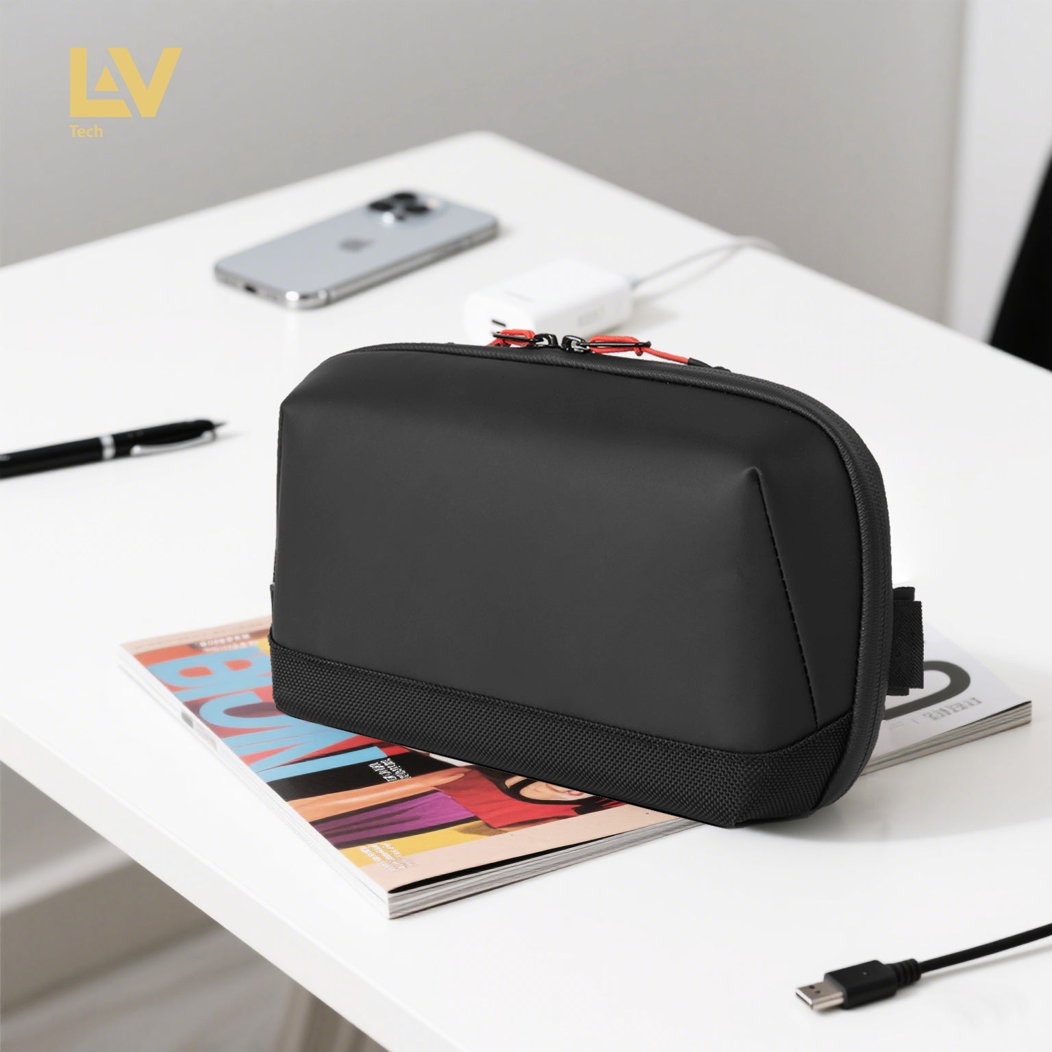 Designed with travel in mind, the LAV TECH Tech Pouch comes equipped with a durable carry strap, making it easy to grab and go. Whether you're navigating airports, commuting daily, or heading into the field, the strap adds convenience and portability, allowing you to carry it as a standalone pouch or securely attach it to your gear. Compact yet spacious, it fits effortlessly into backpacks, luggage, or carry-on bags — keeping your essentials within reach and perfectly organized wherever you go.