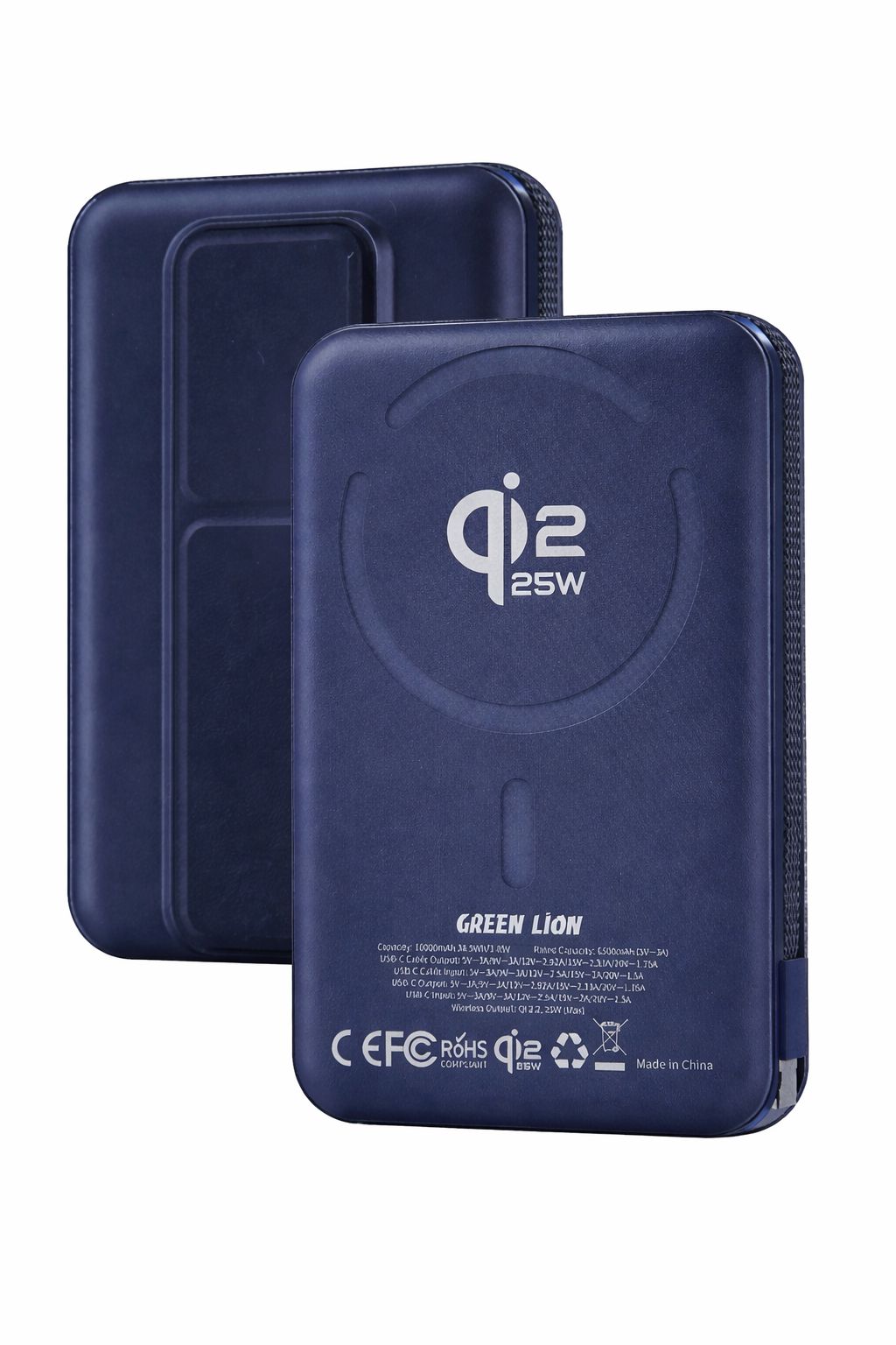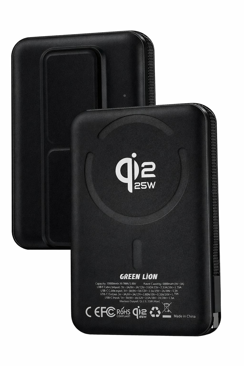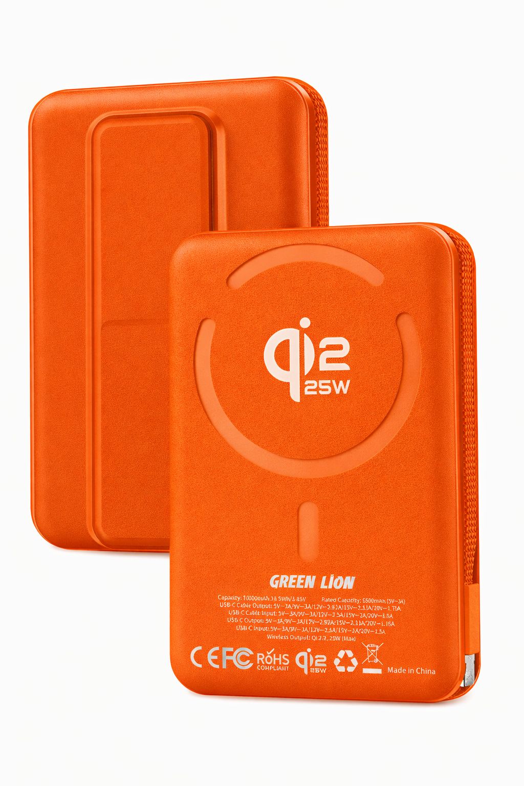 The Green Lion WELLINGTON 10000mAh MagSafe With Built-In Type-C Cable Power Bank PD 35W is a premium 10000mAh portable charger designed for modern smartphones, delivering fast, reliable, and versatile charging in a compact form. Equipped with Qi2.2 wireless technology and 35W Power Delivery, it supports both wired and wireless fast charging for maximum convenience.