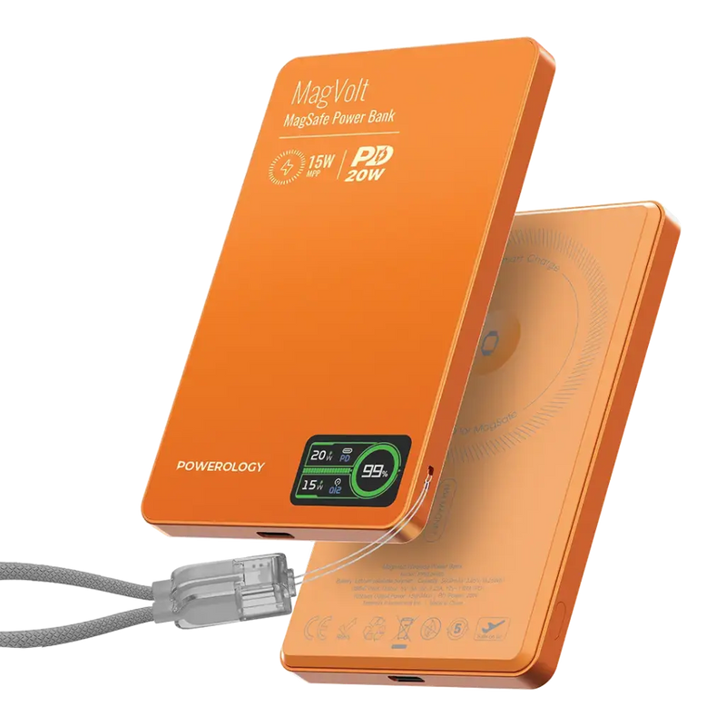 Powerology MagVolt 5000mAH TFT Display Slim Magnetic Wireless Powerbank