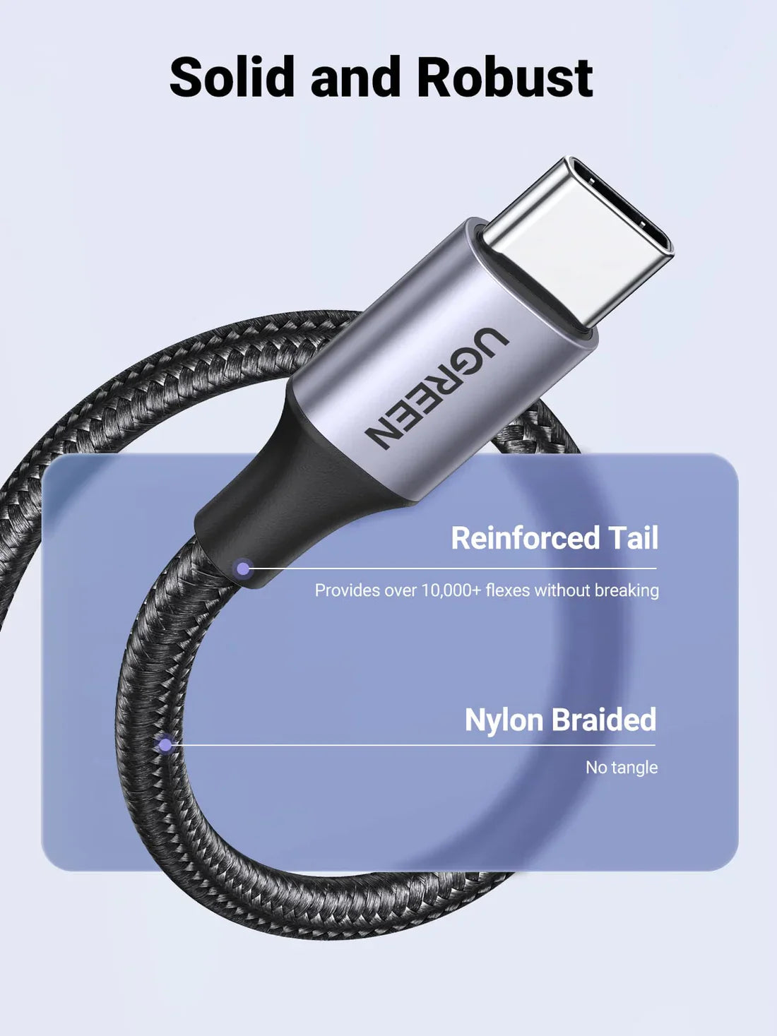 • 3A Fast Charging: UGREEN USB C Cable supports QC 3.0 / FCP / SCP, and delivers the USB C devices power up to 3A, which is 25% faster than regular cables, charging your phones as fast as the original cable