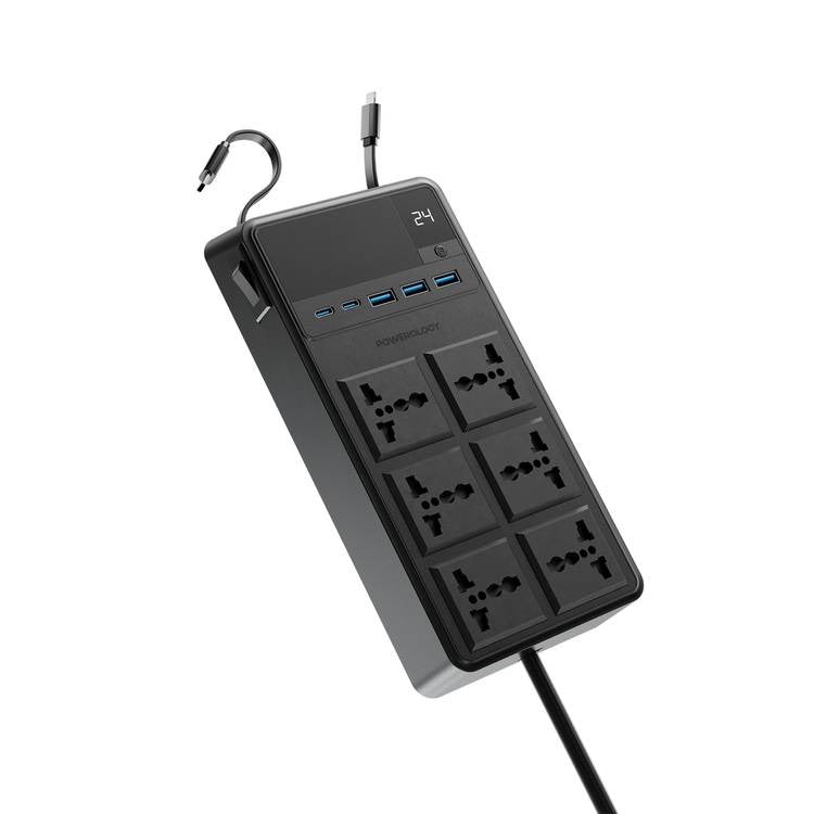 The Powerology 2500W 6 AC Power Strip with Built-In Cables is the perfect multi-purpose power solution. This product is designed to withstand all input voltages from 100 to 240 volts and up to 10 amps. It has four universal AC sockets and a total output of 2500W, so you can power many devices with each other. There are ports for USB-C1 and USB-C2 with PD20W fast charging. It also has three USB-A ports supporting QC3.0 18W and built-in USB-C and Lightning cables for extra convenience. You can charge simultaneously with a total DC output of 58W with all these ports and cables. These built-in cables extend 70 cm, and the 3-meter UK power cord allows flexibility in positioning. In addition to being fire-proof, built-in safety features provide safety during use. Safety switches and universal compatibility will serve all the home, office, and travel needs. Be it charging smartphones, tablets, laptops, or any other electronic gadget, the power strip does not disappoint, and you can buy the most reliable and fastest charging.
