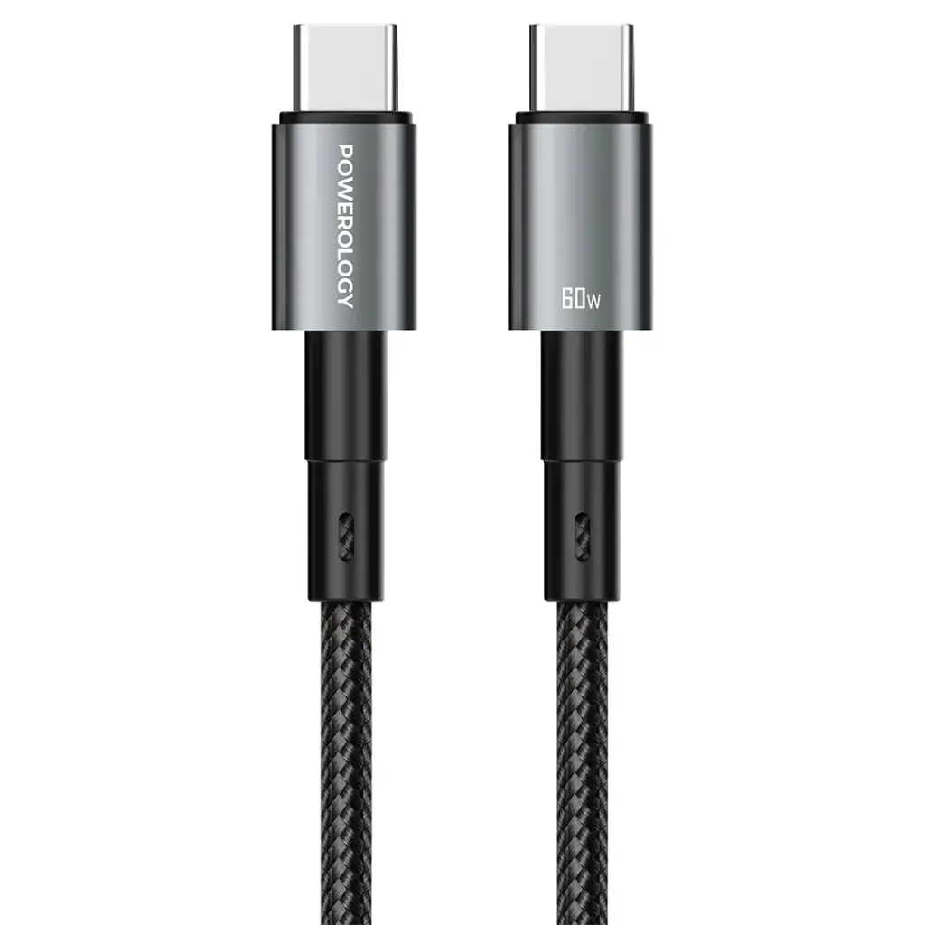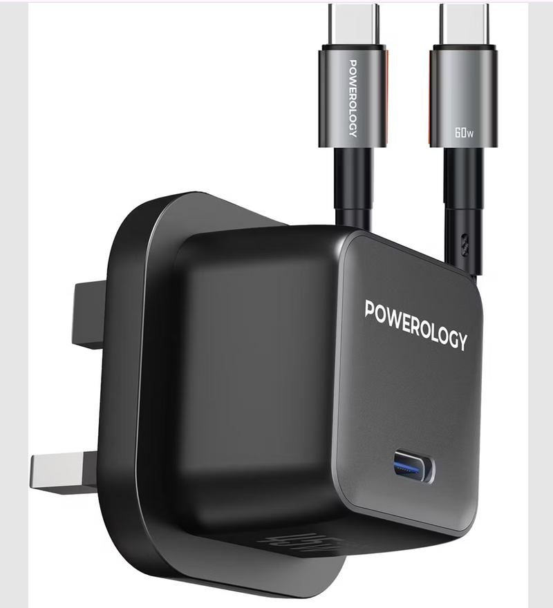 Powerology QX 45W Single Port Type-C UK GaN Adapter With USB-C to USB-C Cable - Black/Gray